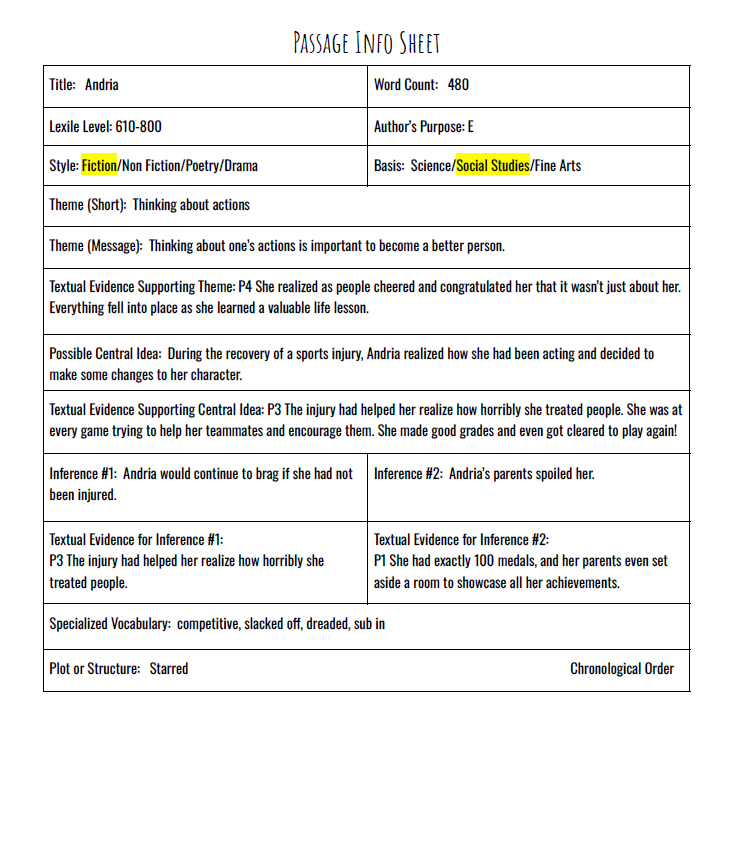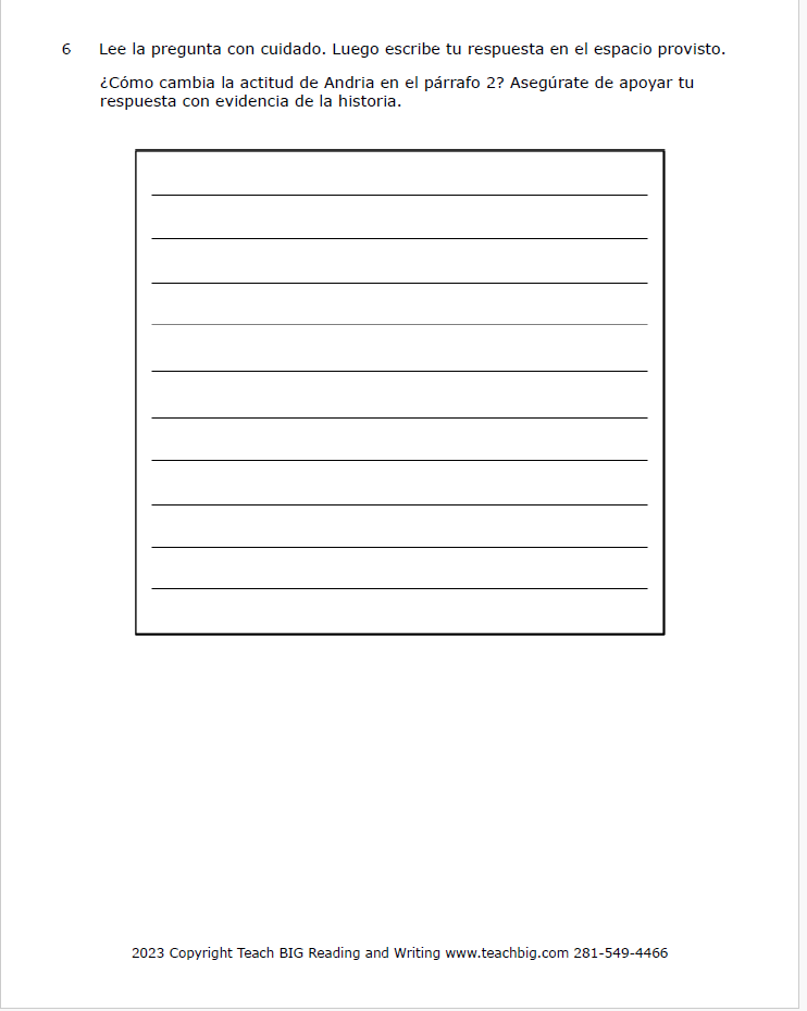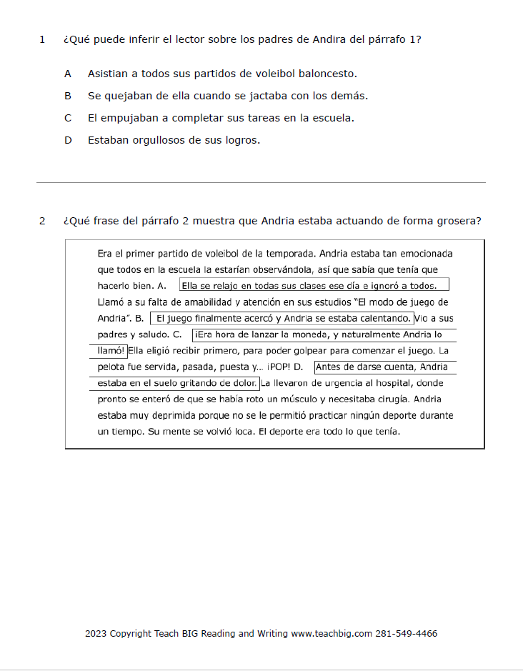 TITLE : Practice Passage : Fiction – 3rd Grade – Andria-SPANISH