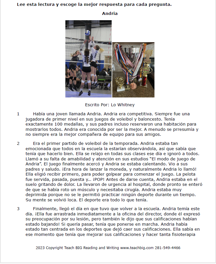 TITLE : Practice Passage : Fiction – 3rd Grade – Andria-SPANISH