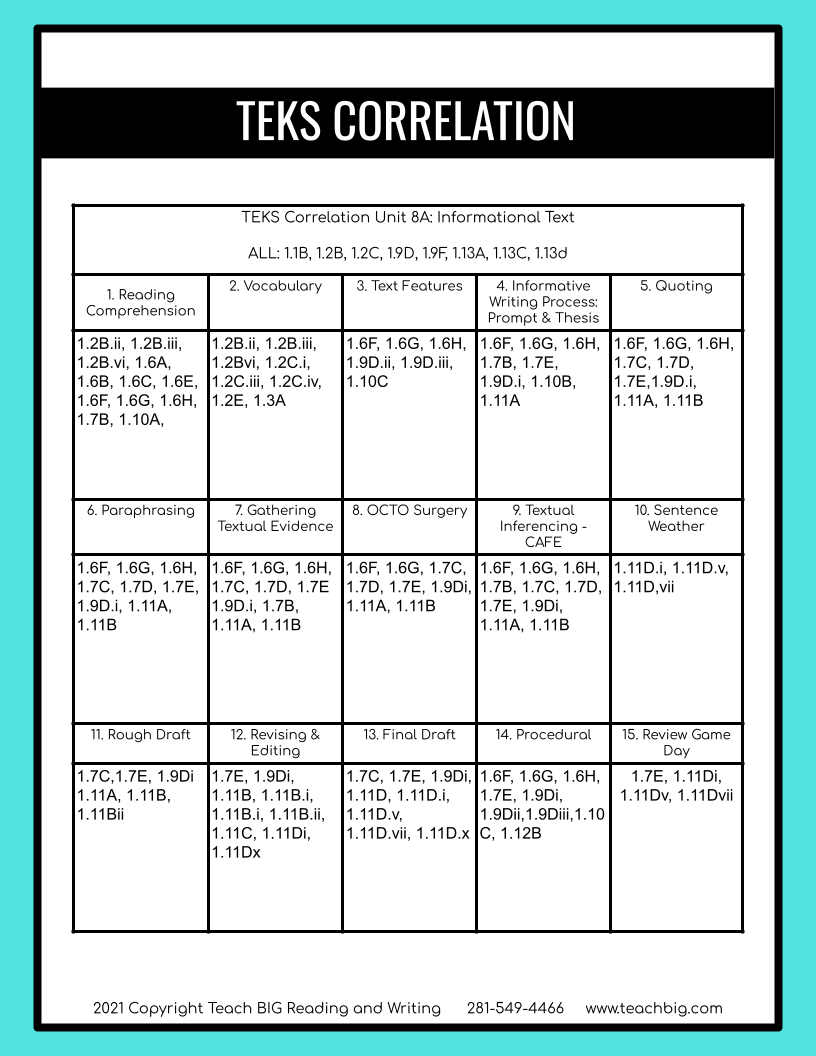 1st Grade | Unit 8A: Informational Text