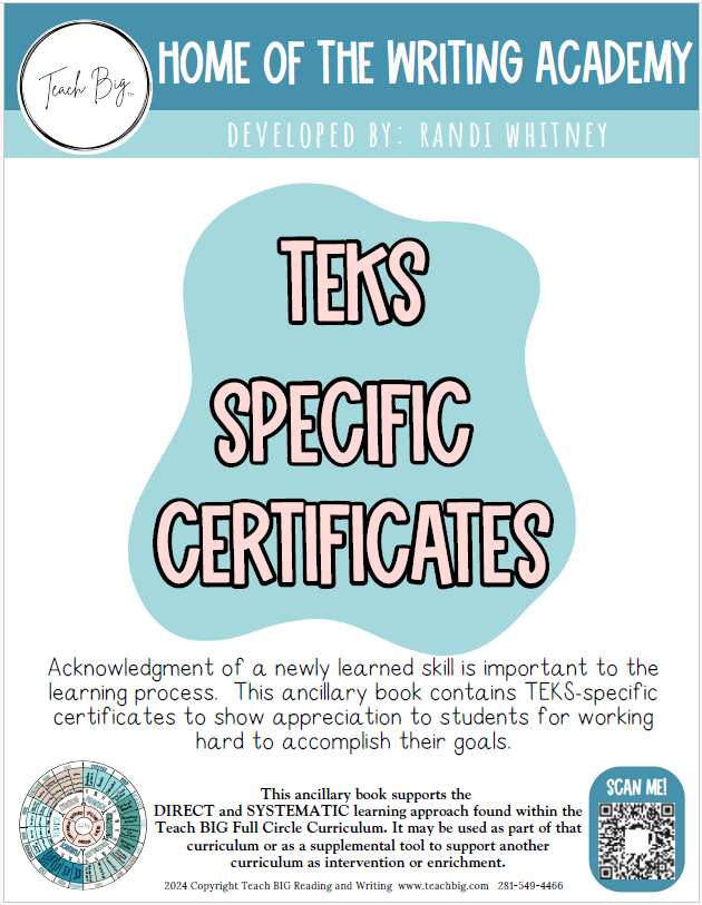 Acknowledgment of a newly learned skill is important to the learning process. This ancillary book contains TEKS-specific certificates to show appreciation to students for working hard to accomplish their goals.