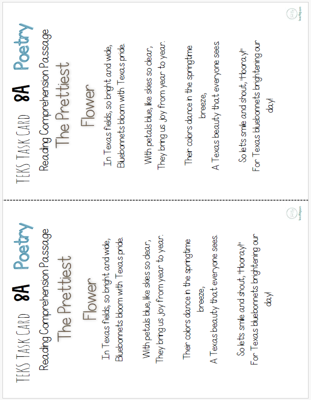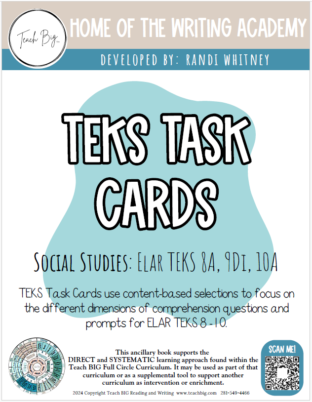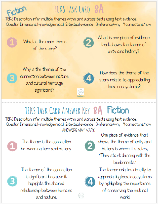 TEKS Task Cards use content-based selections to focus on the different dimensions of comprehension questions and prompts for ELAR TEKS 8 - l 0.