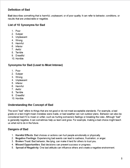 The Very Good Book "Bad" is a 36-page resource designed for grades 3-8 that focuses on teaching synonyms and antonyms through monthly word studies tailored to grade level and needs. Each word study includes definitions, synonyms, idioms, examples, and engaging projects to help students expand their vocabulary deeply and meaningfully over time.