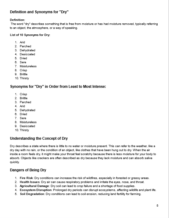 The Very Good Book "Dry" is a 36-page resource designed for grades 3-8 that focuses on teaching synonyms and antonyms through monthly word studies tailored to grade level and needs. Each word study includes definitions, synonyms, idioms, examples, and engaging projects to help students expand their vocabulary deeply and meaningfully over time.