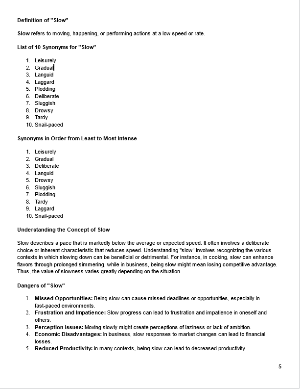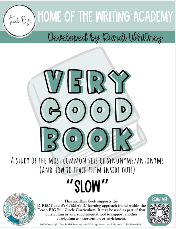 The Very Good Book "Slow" is a 36-page resource designed for grades 3-8 that focuses on teaching synonyms and antonyms through monthly word studies tailored to grade level and needs. Each word study includes definitions, synonyms, idioms, examples, and engaging projects to help students expand their vocabulary deeply and meaningfully over time.