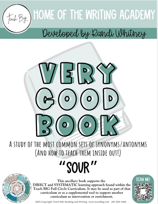 The Very Good Book "Sour" is a 36-page resource designed for grades 3-8 that focuses on teaching synonyms and antonyms through monthly word studies tailored to grade level and needs. Each word study includes definitions, synonyms, idioms, examples, and engaging projects to help students expand their vocabulary deeply and meaningfully over time.