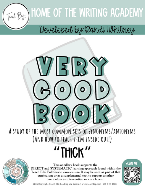 The Very Good Book "Thick" is a 36-page resource designed for grades 3-8 that focuses on teaching synonyms and antonyms through monthly word studies tailored to grade level and needs. Each word study includes definitions, synonyms, idioms, examples, and engaging projects to help students expand their vocabulary deeply and meaningfully over time.