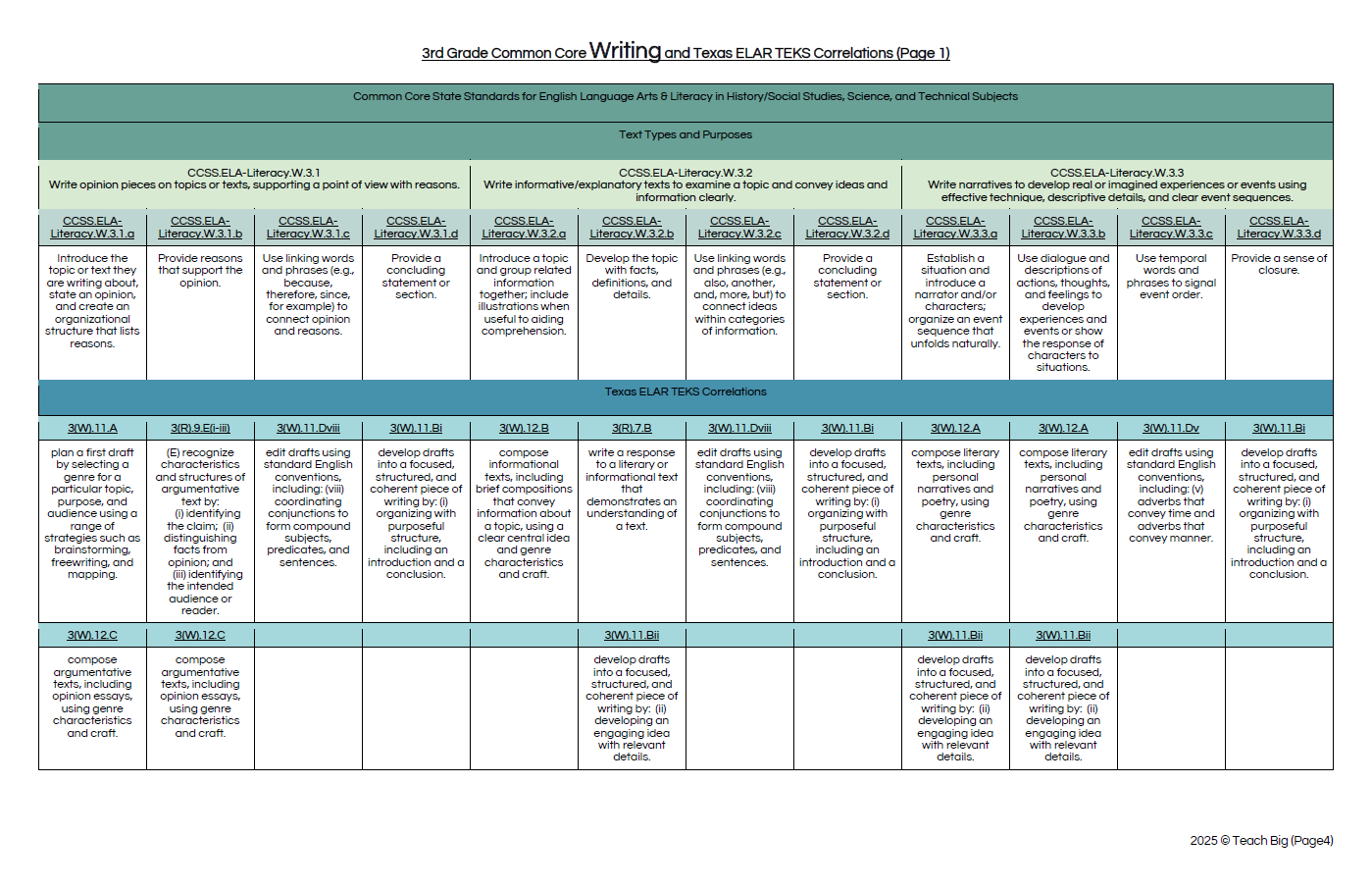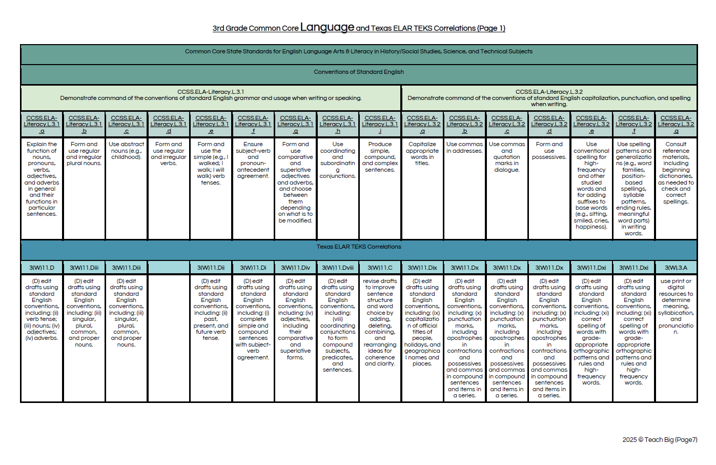 TEKS to CCSS ELAR Crosswalk Document - 3rd Grade