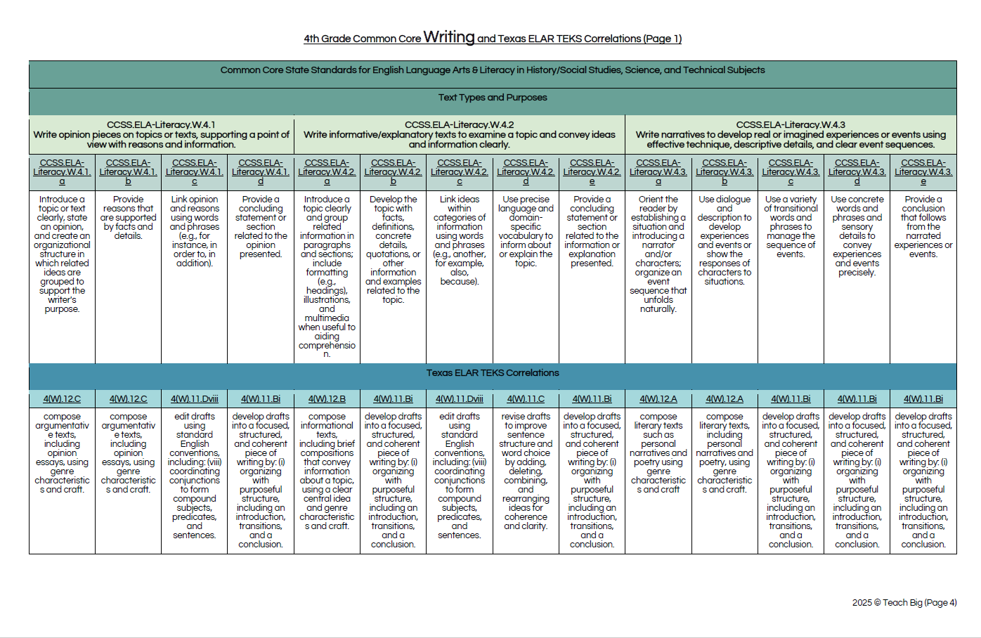 TEKS to CCSS ELAR Crosswalk Document - 4th Grade