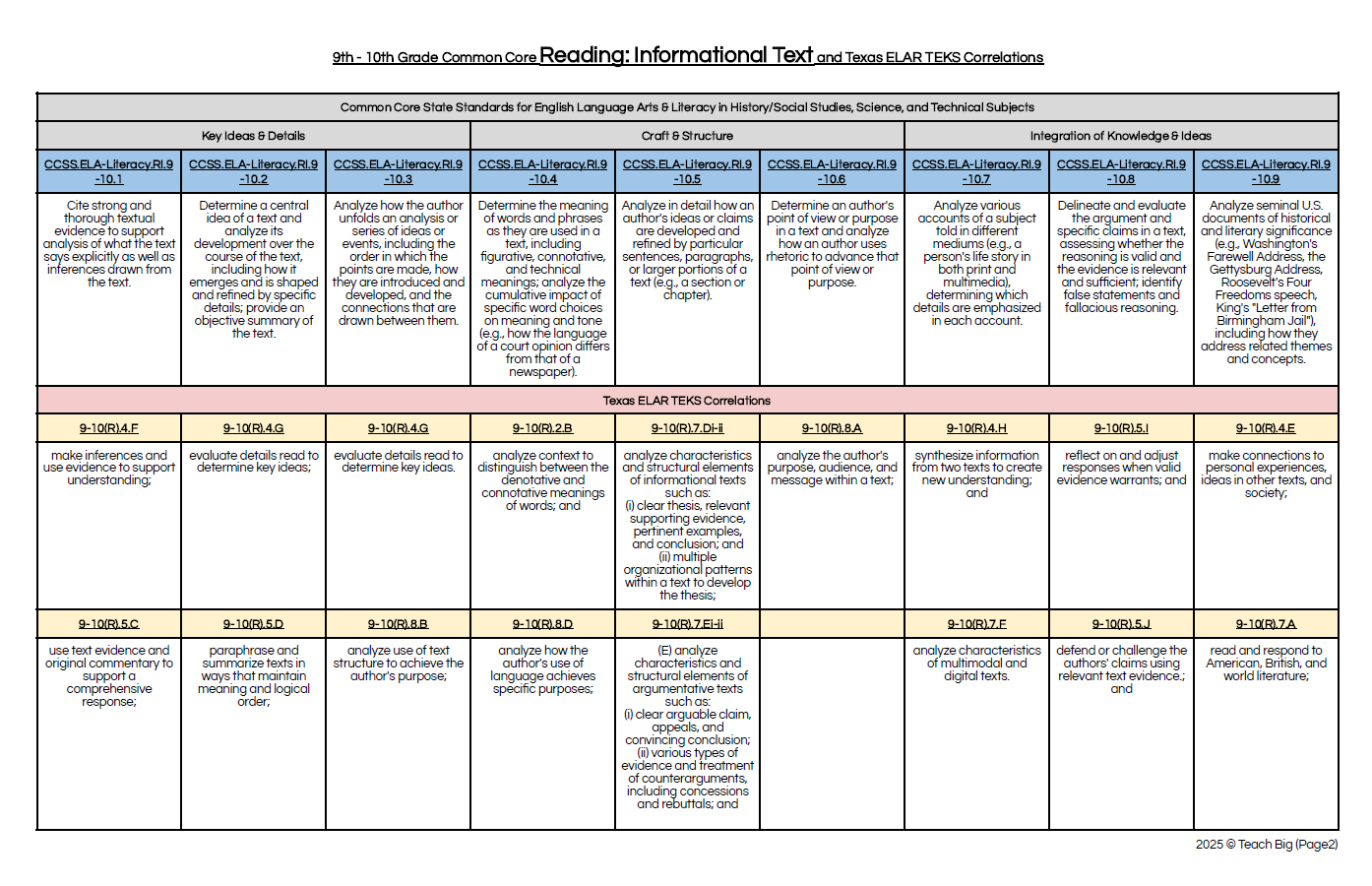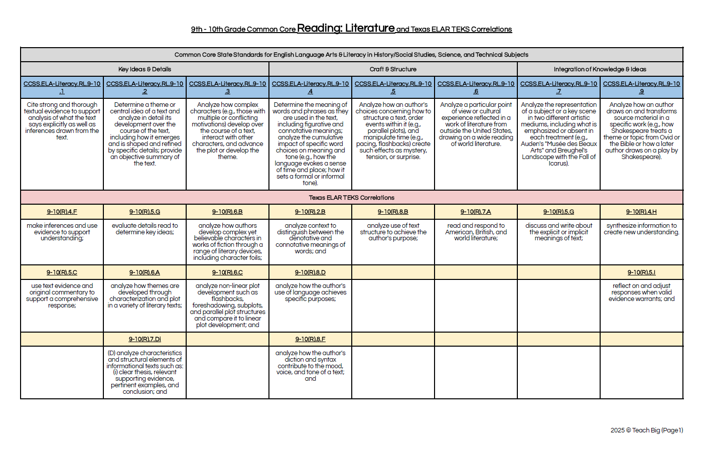 TEKS to CCSS ELAR Crosswalk Document - 9th-10th
