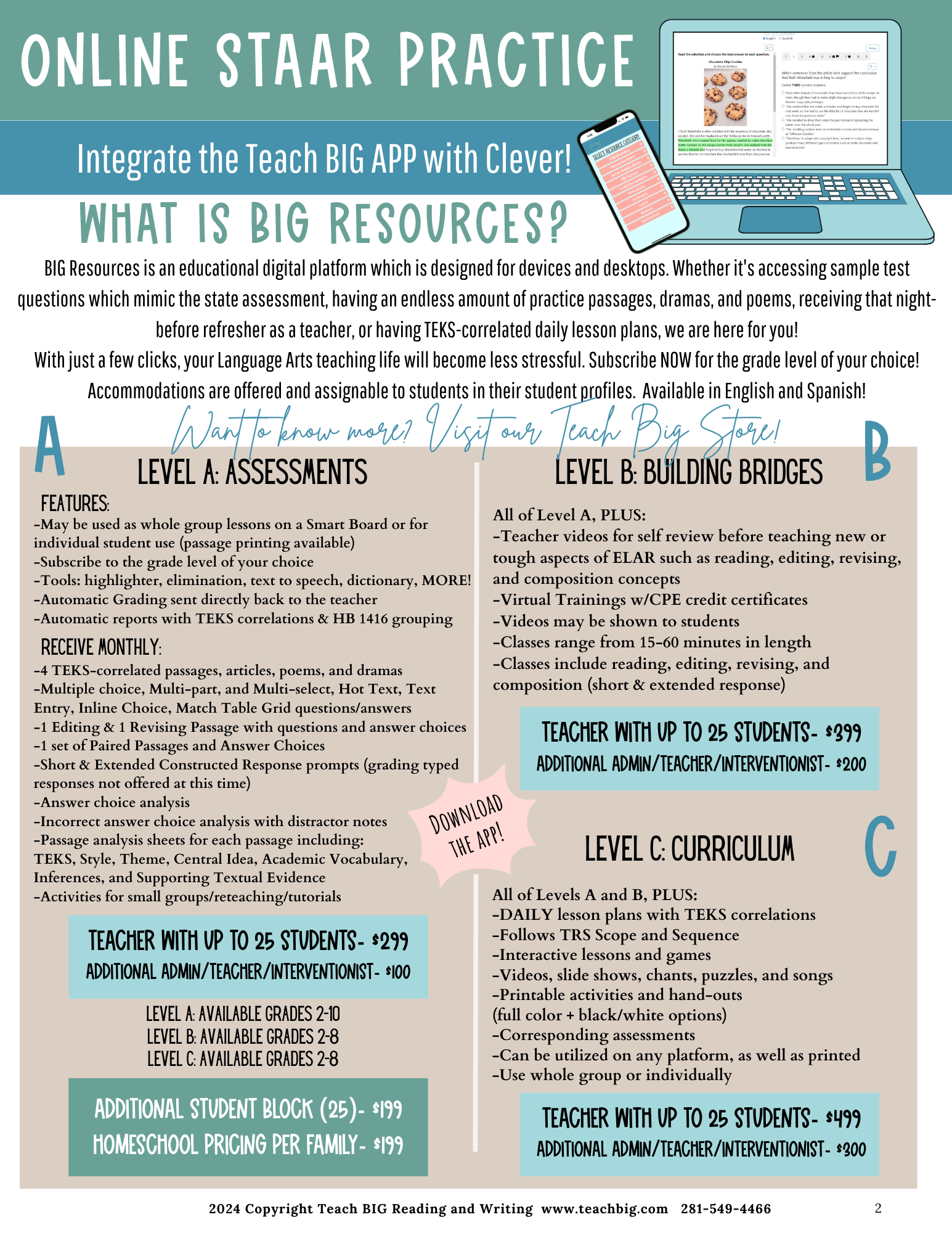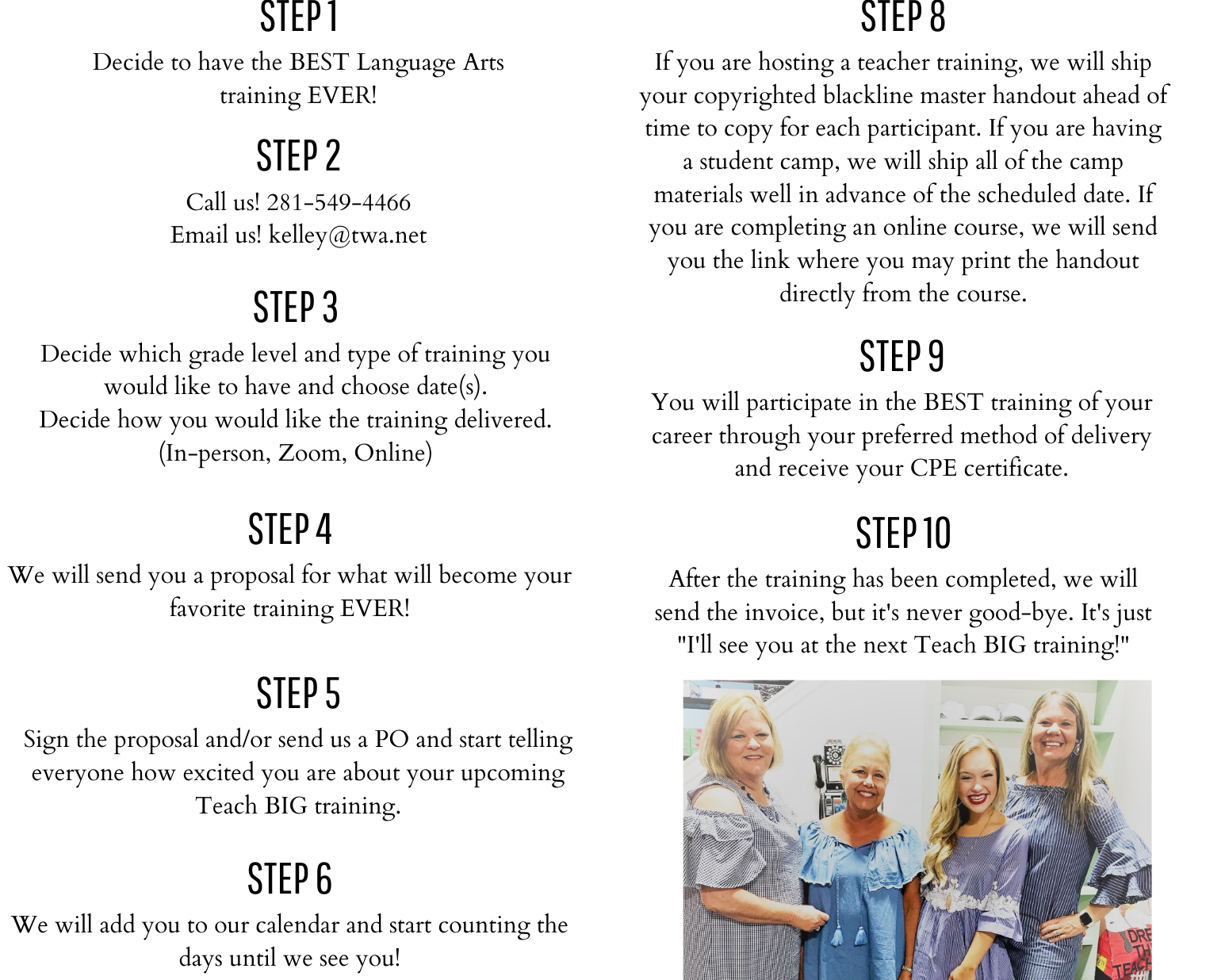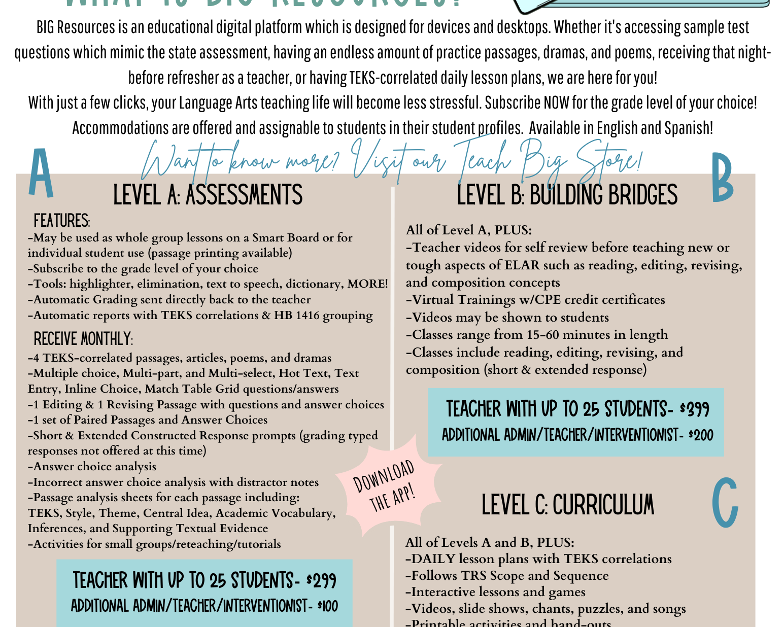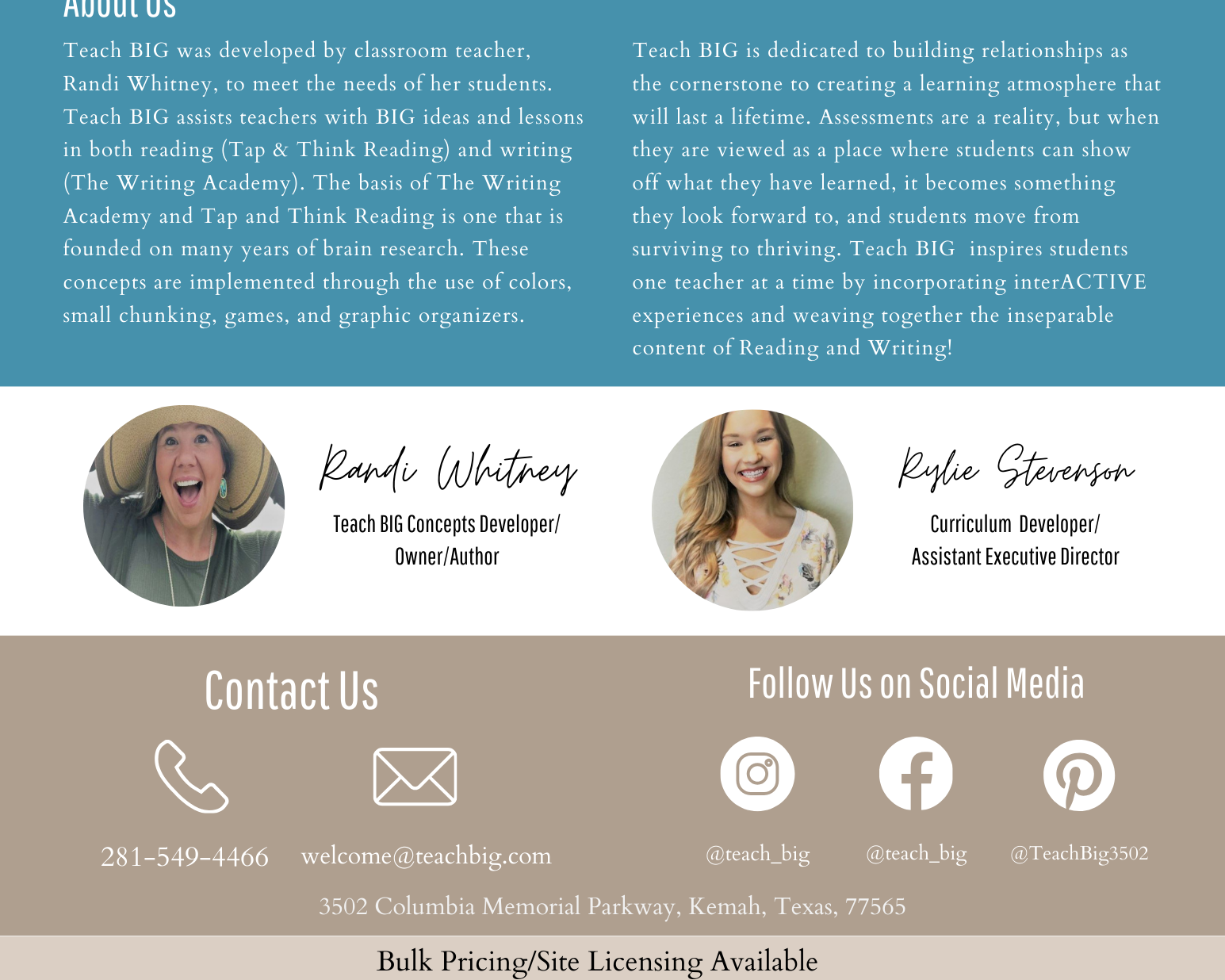 We want to make every aspect having Teach BIG in your classroom attainable and easy. Whether you are needing printed agendas for conferences, descriptions of services and products, or grant-writing information, this is the tab for YOU!!