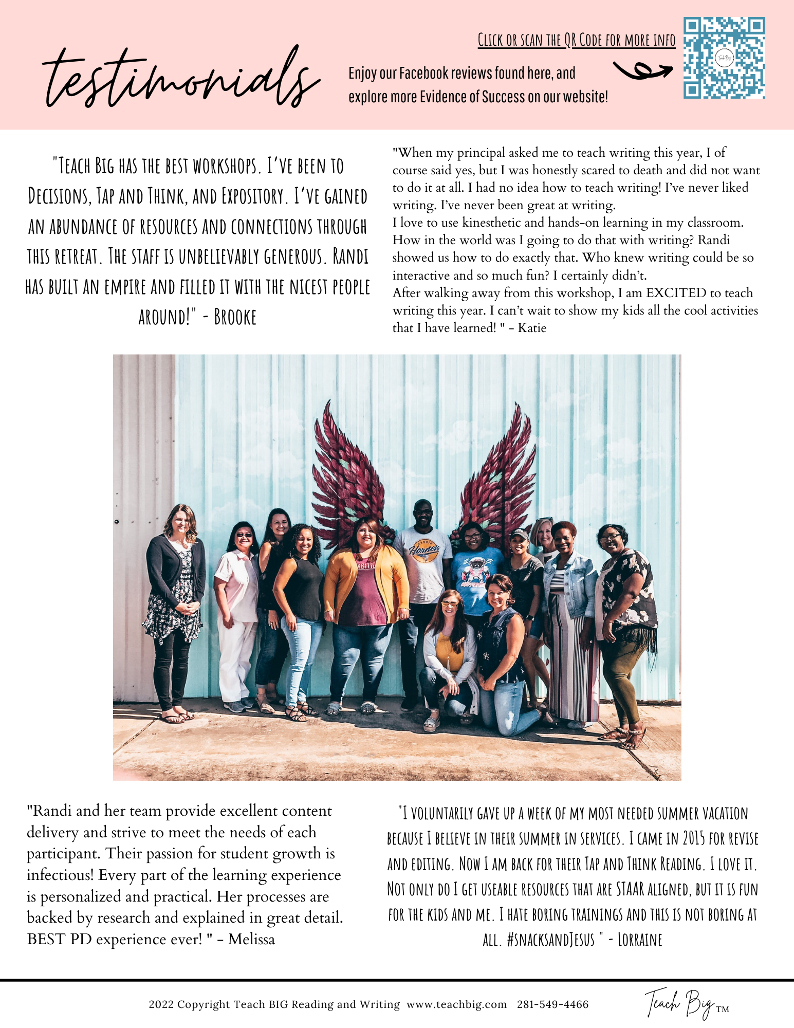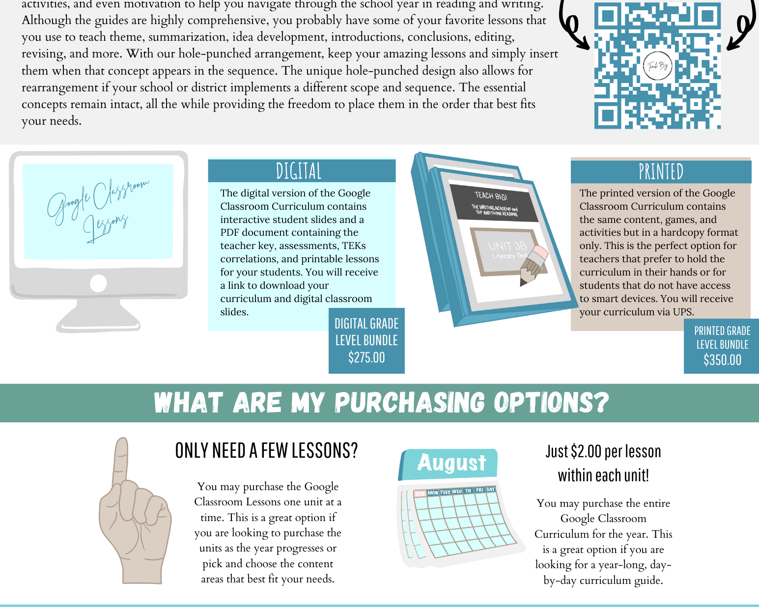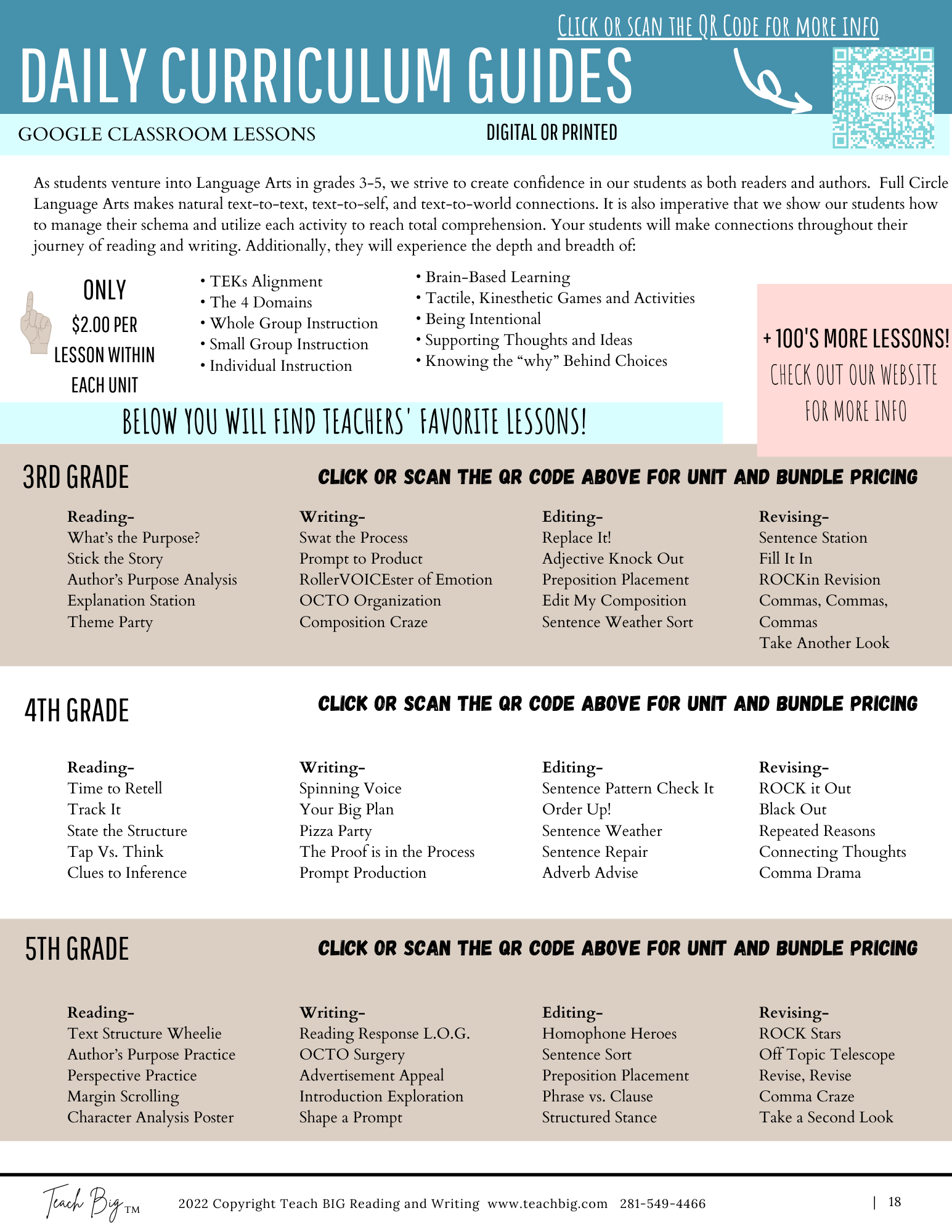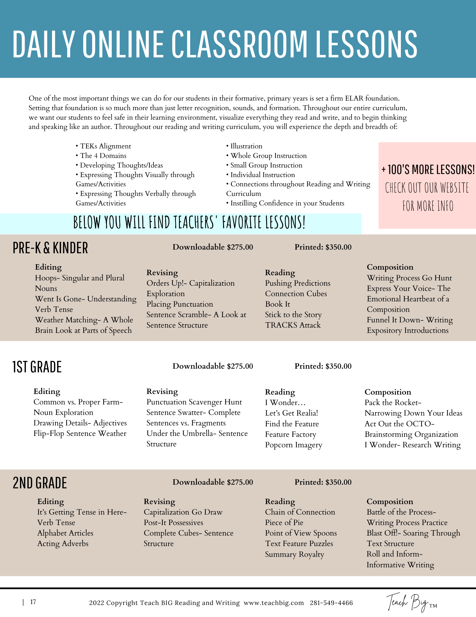 We want to make every aspect having Teach BIG in your classroom attainable and easy. Whether you are needing printed agendas for conferences, descriptions of services and products, or grant-writing information, this is the tab for YOU!!