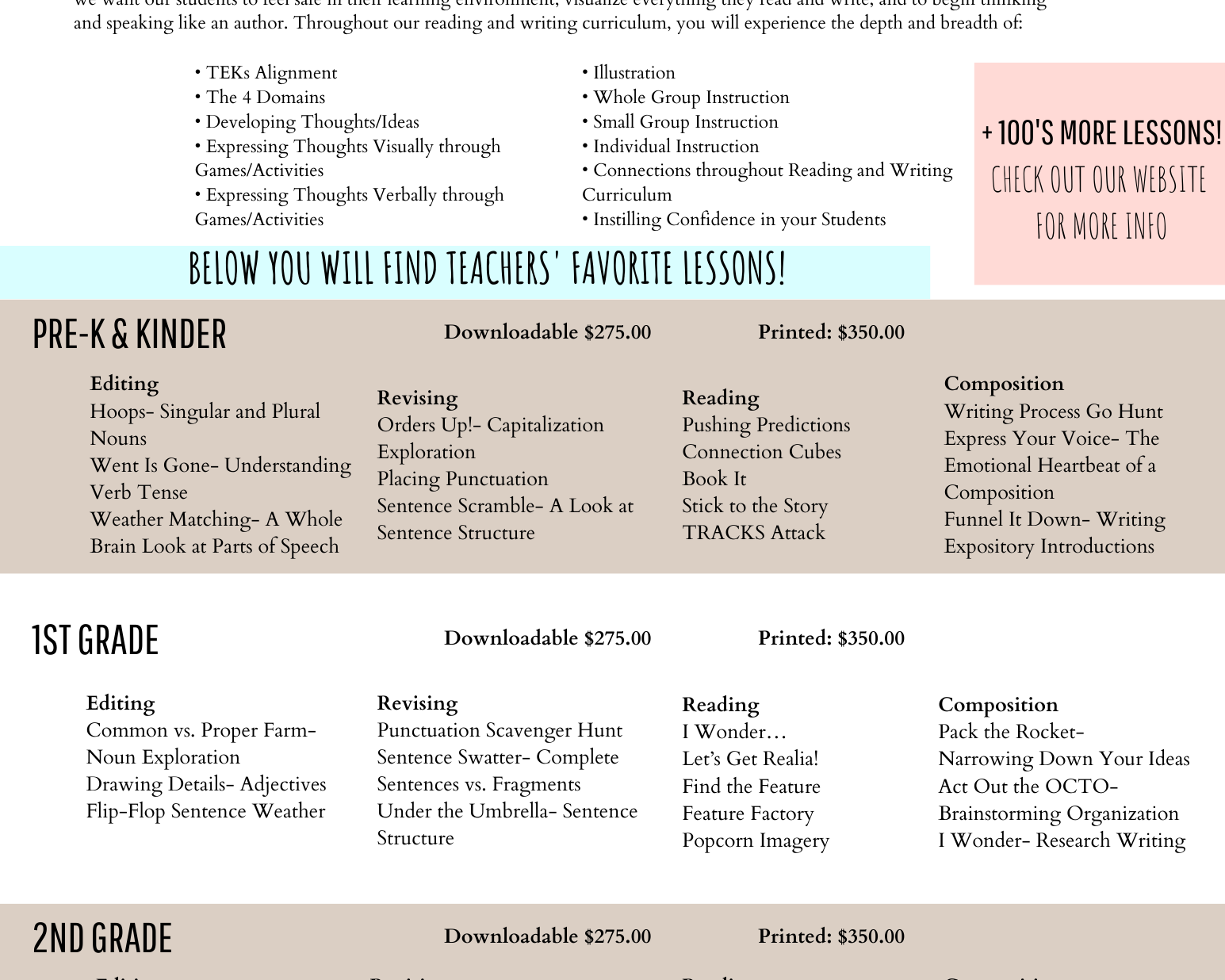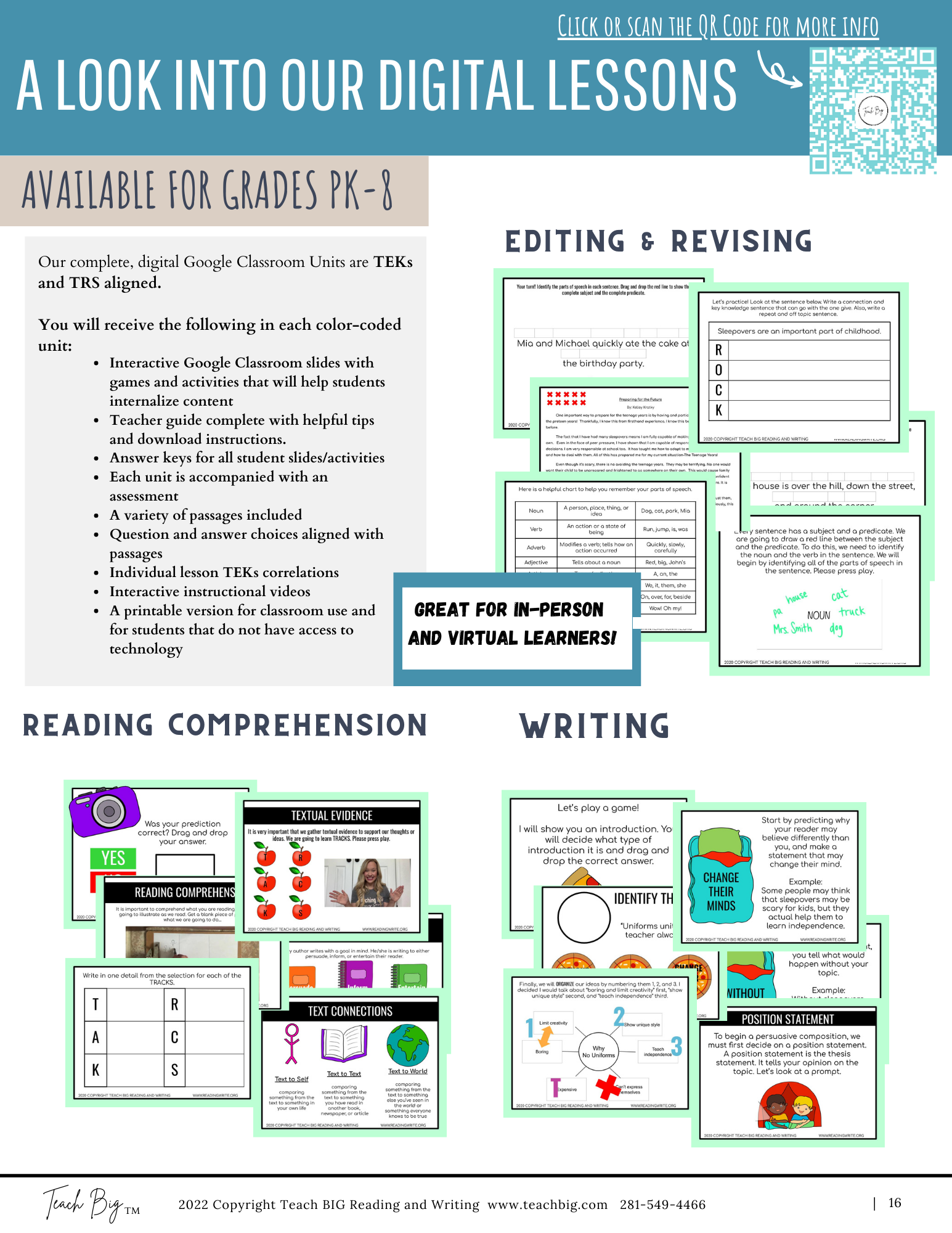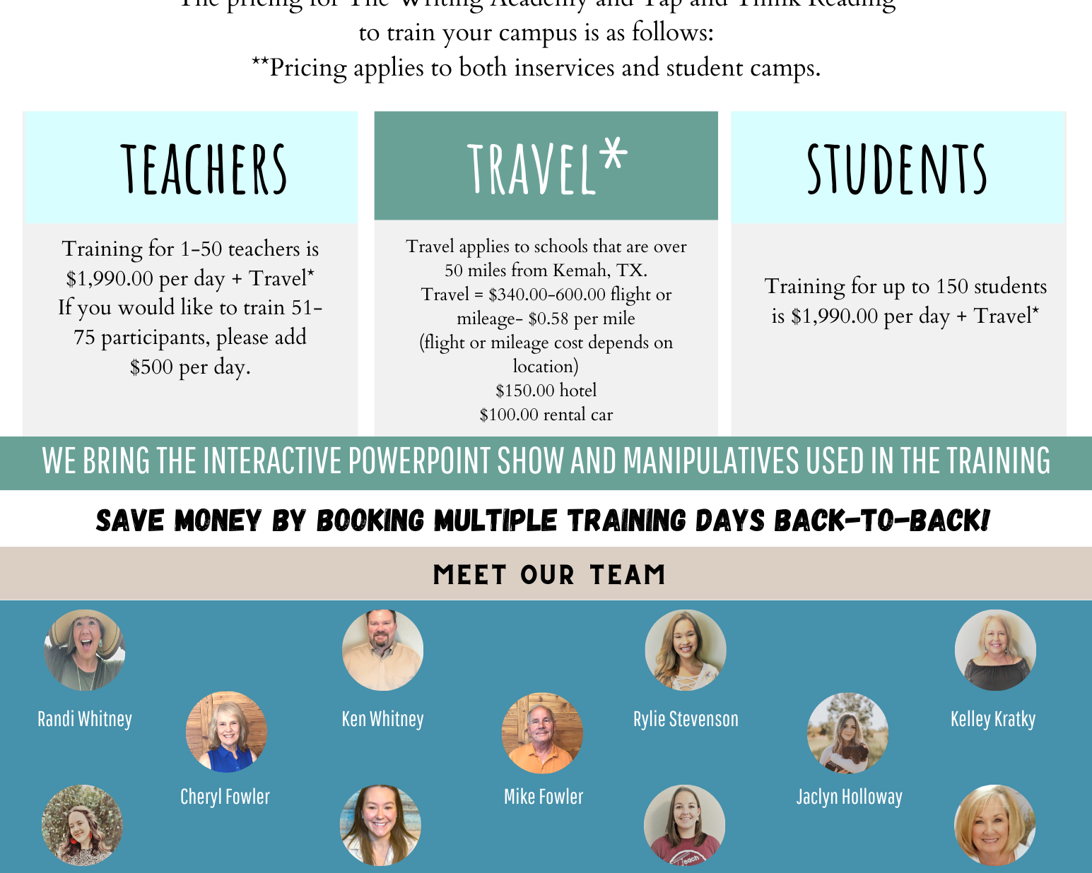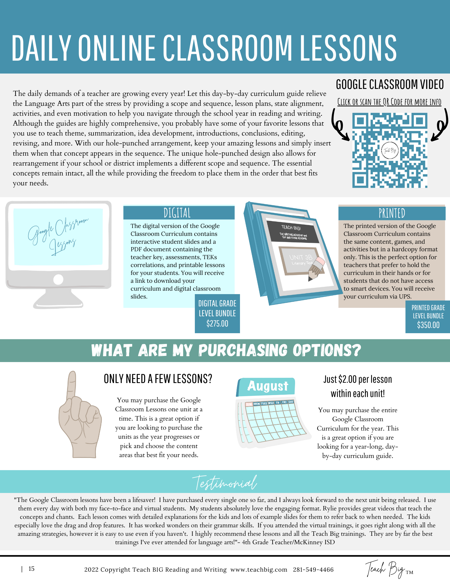 We want to make every aspect having Teach BIG in your classroom attainable and easy. Whether you are needing printed agendas for conferences, descriptions of services and products, or grant-writing information, this is the tab for YOU!!