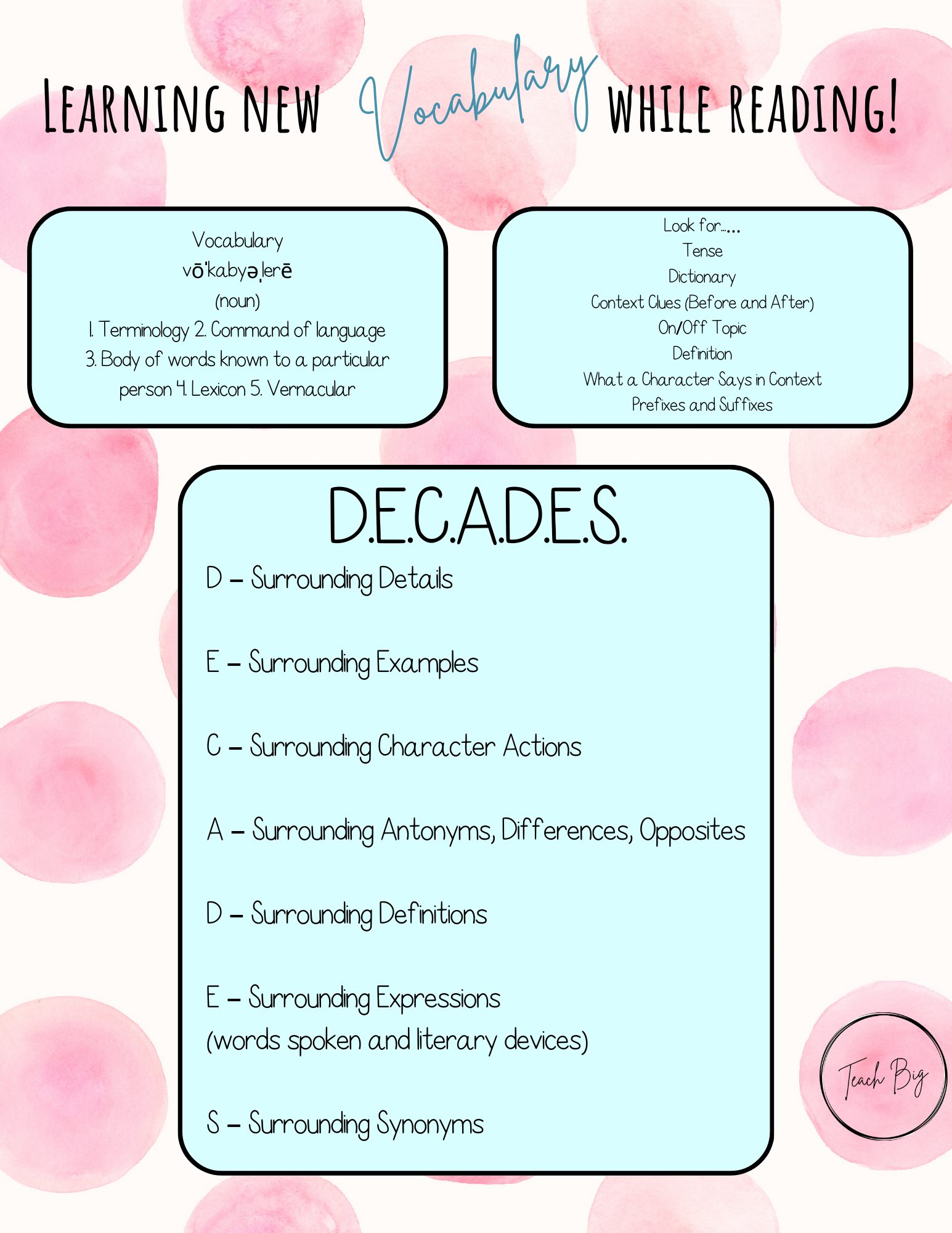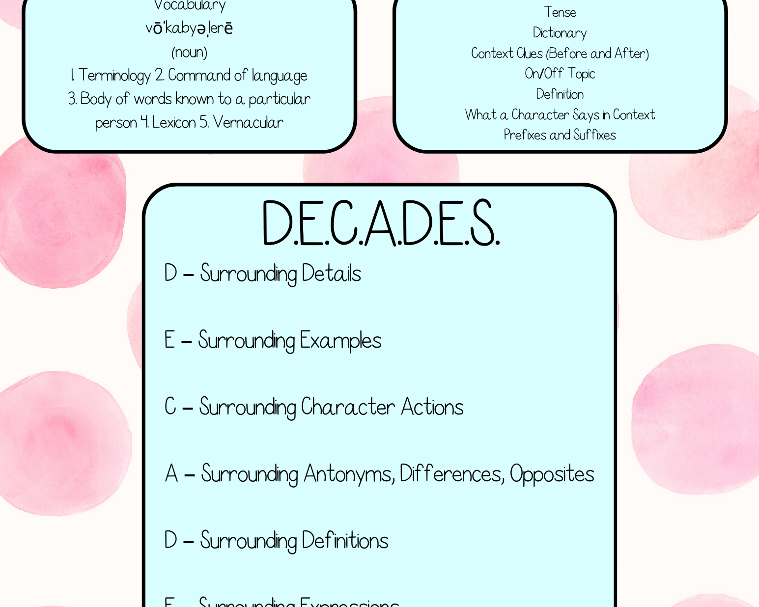 If you are tired of trying to guess which vocabulary words might appear on an assessment, then this tab is for you! Instead, explore ways to tackle any vocabulary word that may appear on a test. Learn new strategies to deconstruct and construct new vocabulary words.