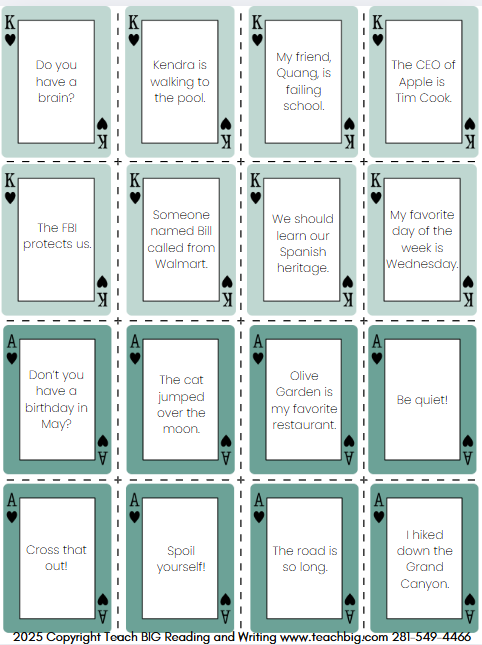 This section offers small group tutorials in reading, writing, vocabulary, and more to help meet House Bill 1416 standards. Activities are printable in color or black and white, with instructions included. For 3–6 free monthly activities and access to lessons, assessments, and CPE credit videos, join the Teach BIG online subscription platform for grades 7-8th.