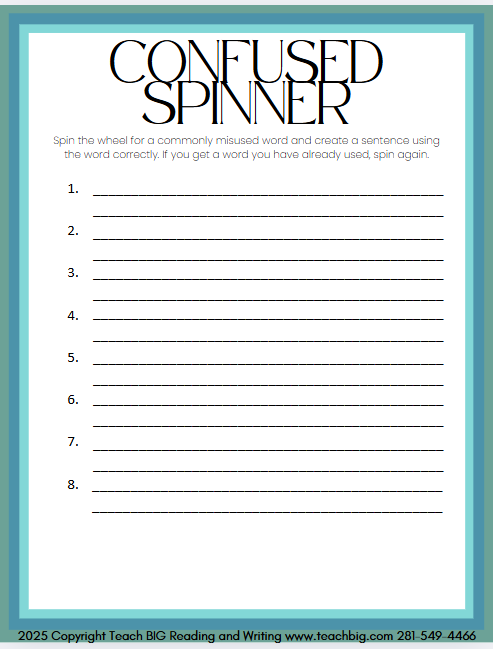 Confused Spinner - Misused and Confused Words: This document has a total of 2 pages.