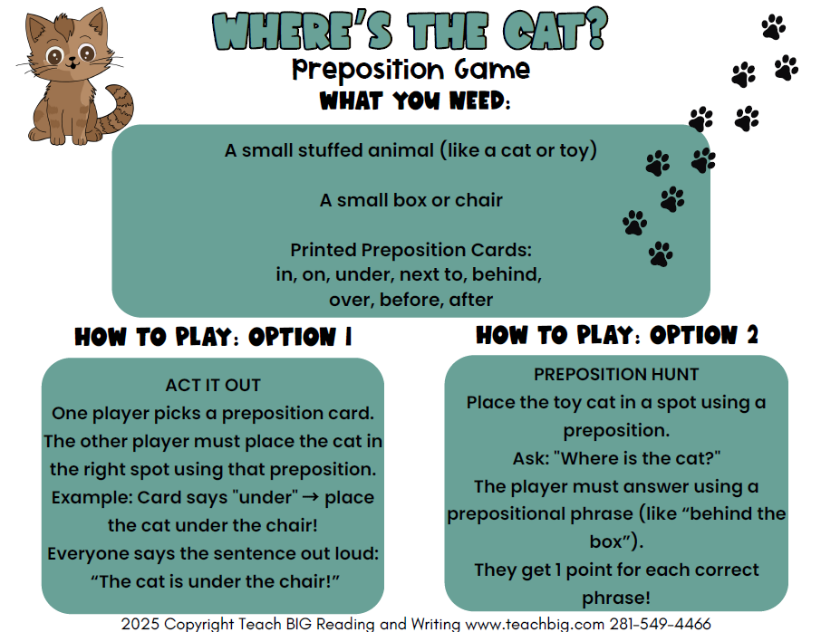 Where's the Cat? - Preposition Game: This document has a total of 2 pages.