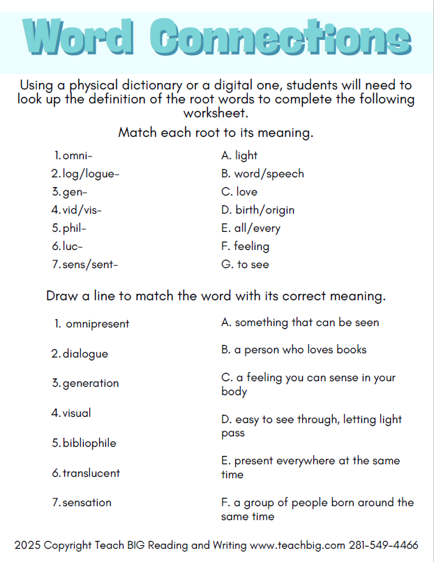 This section provides targeted small group tutorials in reading, writing, and language skills to support House Bill 1416 standards. Activities are printable and self-guided. Teach BIG also offers a subscription with free monthly resources, digital lessons, STAAR 2.0 practice tests, and video lessons for CPE credit.