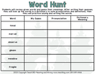 Word Hunt: This document has a total of 1 page.