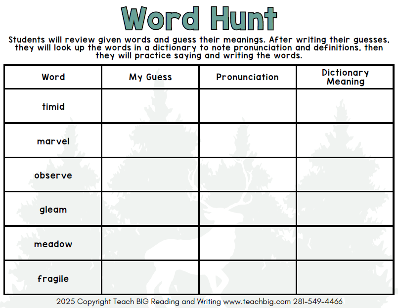 This section provides targeted small group tutorials in reading, writing, and language skills to support House Bill 1416 standards. Activities are printable and self-guided. Teach BIG also offers a subscription with free monthly resources, digital lessons, STAAR 2.0 practice tests, and video lessons for CPE credit.